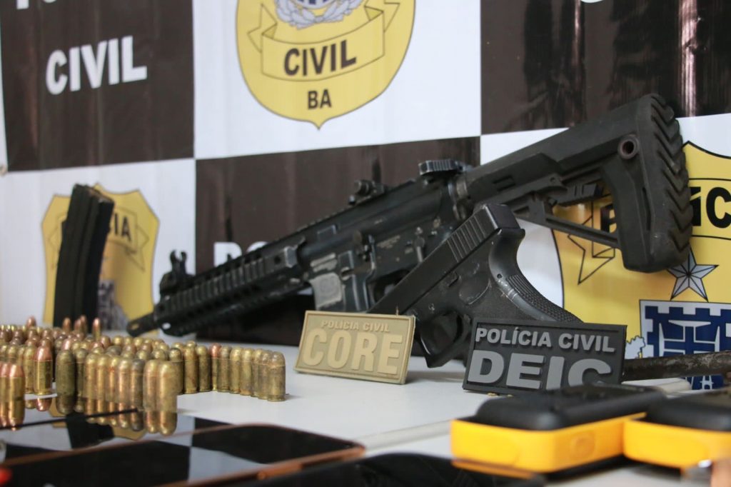 A Polícia Civil da Bahia, por meio do Departamento Especializado de Investigações Criminais (Deic), desarticulou, no município de Candeias, nesta segunda-feira (23), um bunker e apreendeu aproximadamente meia tonelada de drogas, entre maconha, crack e cocaína, dois fuzis calibres 5.56 e 7.62 e milhares de munições. Todo material foi apreendido dentro de um imóvel que pertence a um dos fugitivos do sistema prisional, responsável pelo tráfico de drogas naquela região e também um dos líderes de um grupo criminoso.