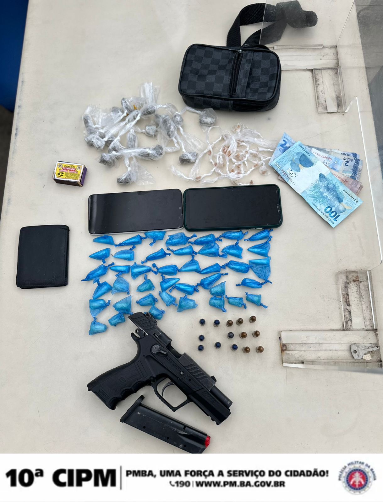 Os dois suspeitos, juntamente com todo o material apreendido, foram encaminhados à 20ª Delegacia Territorial de Candeias para adoção das medidas legais cabíveis.