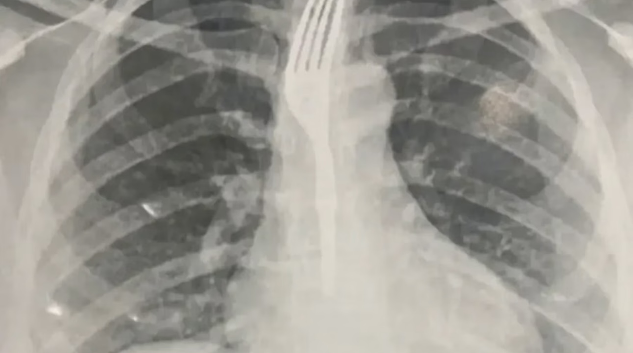 A paciente foi levada ao Hospital Geral de Guanambi (HGG), onde exames de imagem mostraram que o utensílio estava preso no esôfago, em posição considerada de risco.
