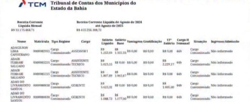 De acordo com dados disponíveis no sistema do TCM, constam registros de pagamentos realizados entre janeiro e agosto de 2025, envolvendo cargos como assessor, gerente e diretor. Os relatórios listam valores referentes a salários, vantagens e gratificações, como se as rescisões tivessem sido integralmente quitadas. No entanto, os ex-funcionários garantem que “nada saiu do papel”.
