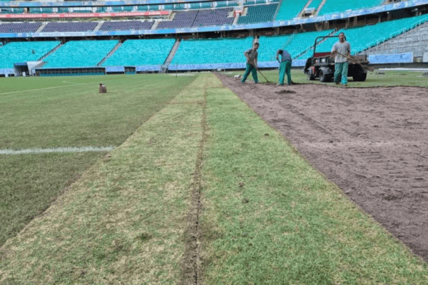 TAPETE NOVO: plantio de gramado da Arena Fonte Nova foi finalizado; campo estará pronto para jogo contra o Grêmio