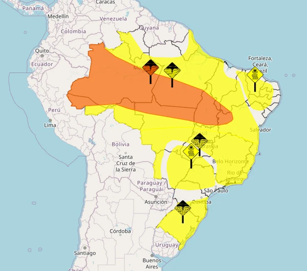 O Inmet enfatiza a necessidade de atenção por parte da população e das autoridades, visto que o cenário meteorológico eleva o risco de danos como: