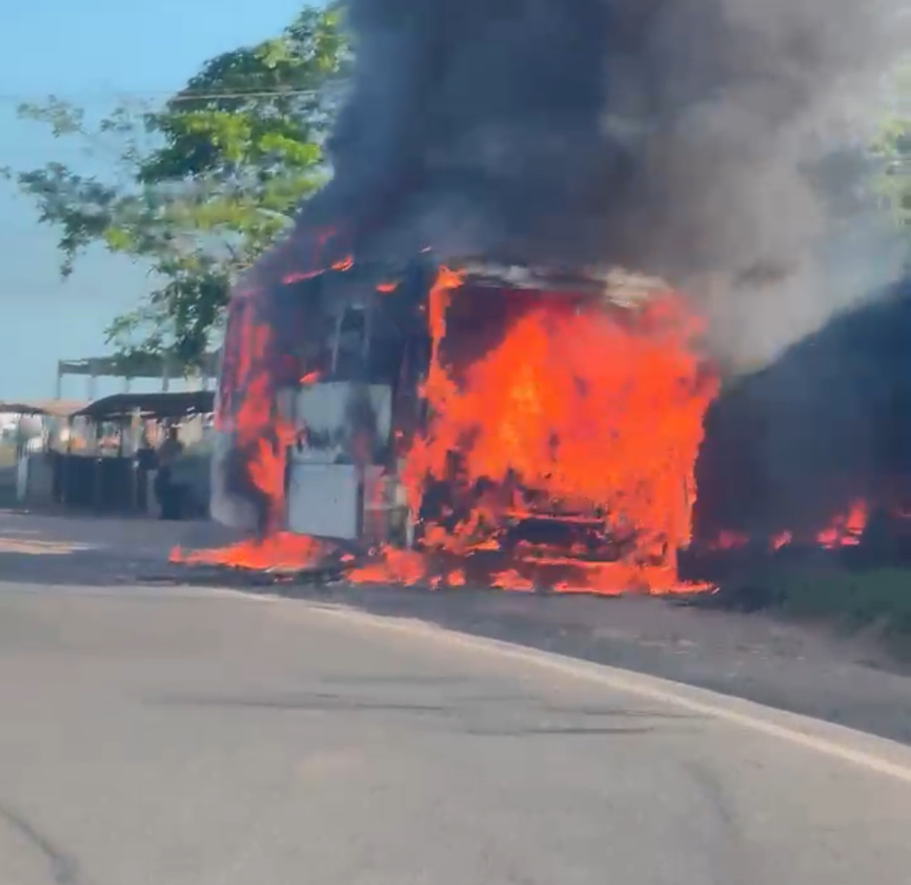 Na manhã desta terça-feira (18), um ônibus pegou fogo nas proximidades do condomínio Ouro Negro, em Candeias. Segundo informações preliminares, o veículo teria sofrido uma pane elétrica, o que iniciou as chamas.
