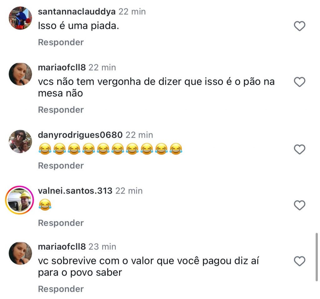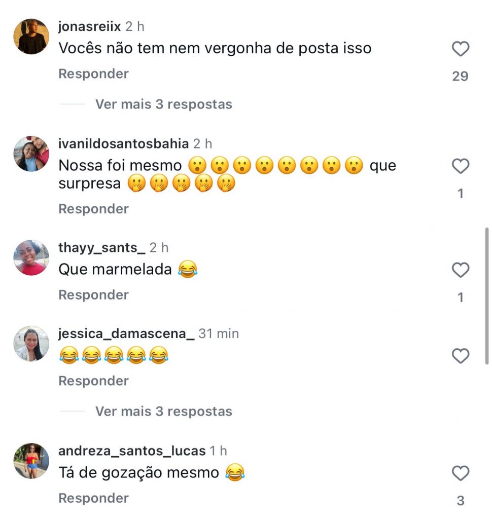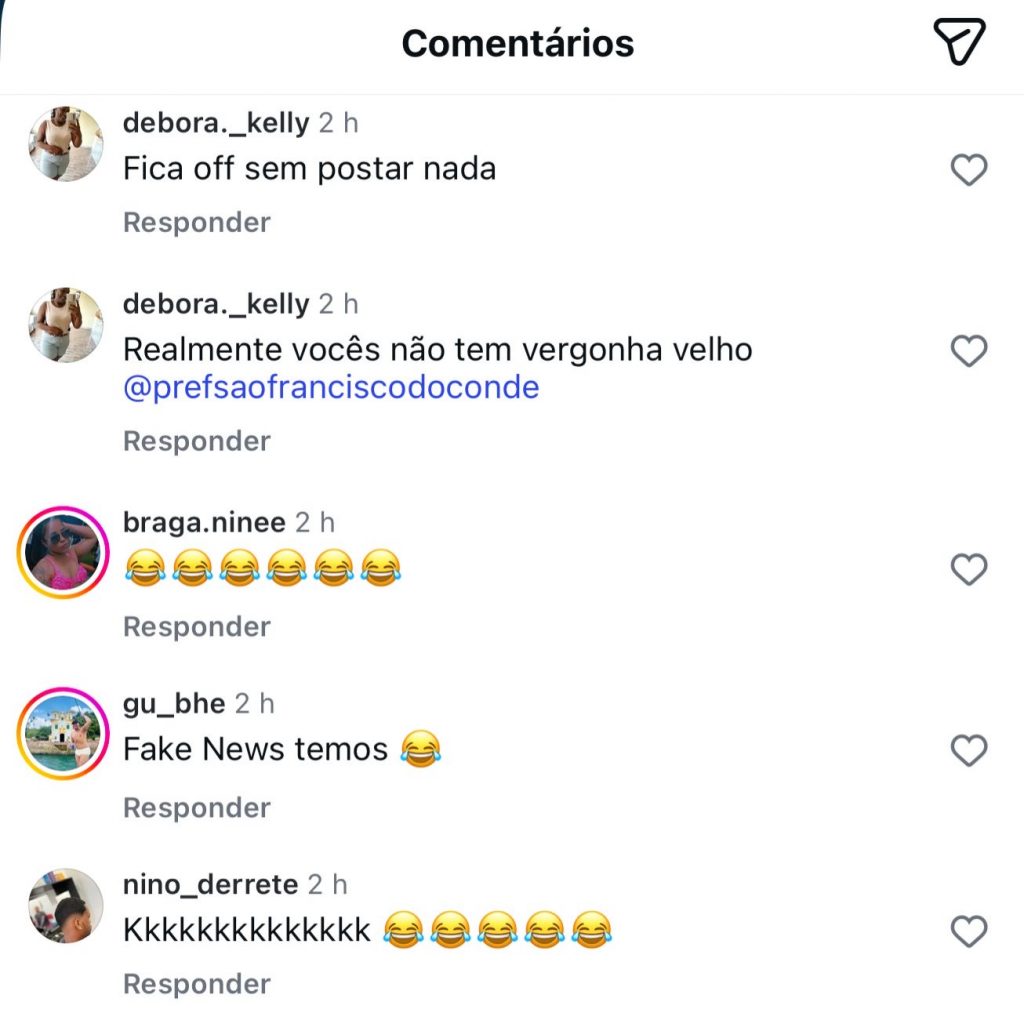 Nos comentários, a população expressou sua revolta sem rodeios: “Vocês não têm nem vergonha de postar isso”, escreveu um seguidor. Outra pessoa ironizou: “Que marmelada.” Houve quem duvidasse da veracidade da informação: “Só acredito vendo. Vendo não estou acreditando 🤣😂.” Vieram comparações: “A história de Pinóquio fosse verdade…” e “Tudo fantasma 😂😂😂.” Muitas famílias expuseram a realidade: “Hoje com isso tudo, na lista ficou menos de 1500 pessoas”, “Esse circo sem lona?”, “Vocês não têm vergonha de dizer que isso é o Pão na Mesa não”, “Você sobrevive com o valor que você pagou? Diz aí para o povo saber.” Outros resumiram: “Fake news temos 😂”, “Não sei quem mente mais”, “Tem nem vergonhaaaa”, “Essa gestão é vergonhosa, não tem um pingo de amor ao próximo”, “Só se foram a família dos vereadores, secretários e do prefeito”, “Nem é primeiro de abril, ai ai viu.”