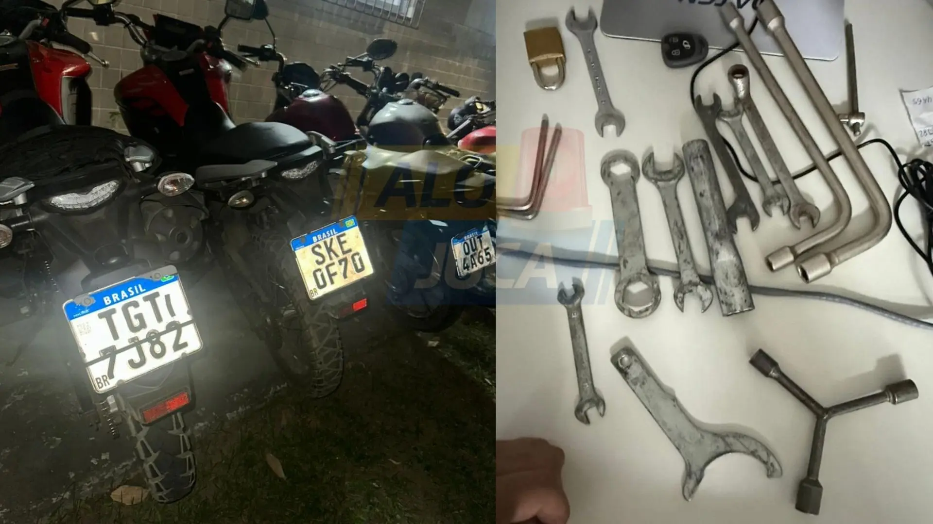 Na tentativa de abordagem, os motociclistas desobedeceram à ordem de parada. Um suspeito conseguiu fugir, outro abandonou a moto e pulou um muro, mas o terceiro indivíduo foi capturado. O suspeito confessou ter participado do roubo e revelou ter adulterado as características da própria moto com fitas e lacres para dificultar a identificação. Além disso, o preso informou que havia outra motocicleta roubada escondida.